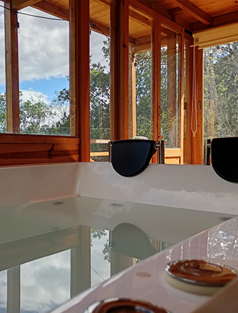 Mejor que una piscina: tenemos jacuzzi privado con capacidad para 4 personas, disponible 24/7 con agua caliente y vistas espectaculares. Además, a solo 200 metros encontrarás los famosos Termales Santa Mónica, una experiencia natural única de la región.